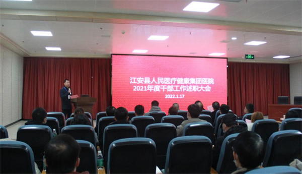 为进一步加强干部队伍建设,全面提高干部的管理水平,1月17日下午,江安县人民医疗健康集团医院召开2021年度干部工作述职大会,集团医院在家党政领导班子出席会议,各党支部书记、分院执行院长、七大中心主任(副主任)、临床医技及职能科室中干参加会议。
