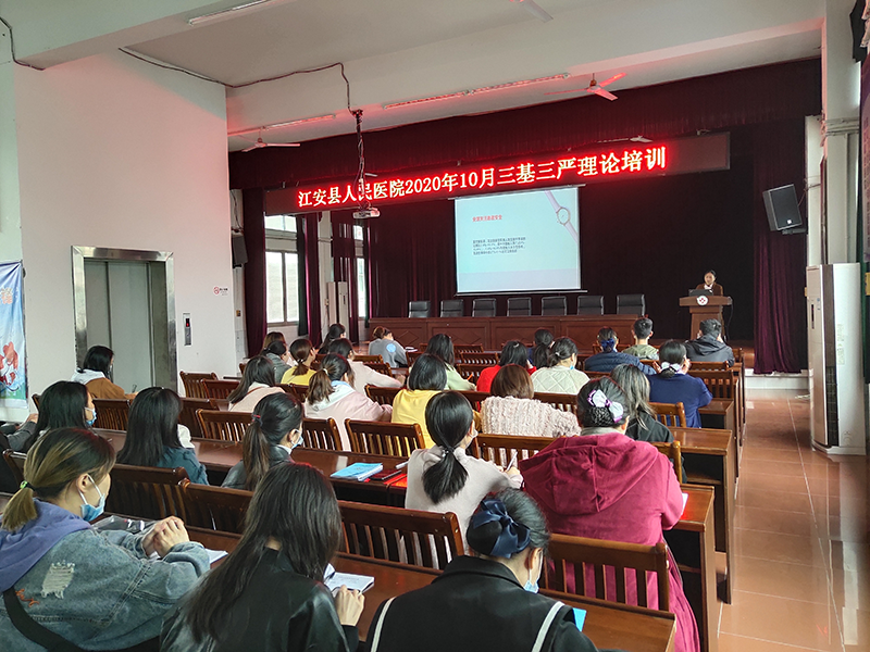 为了使全院护理人员掌握基础护理理论、操作技术、保障护理质量和护理安全,从而提高护理人员的综合素质、服务能力,实现医院的可持续发展。2020年6月18日,江安县人民医院护理部按照护士层级管理,将我院实际工作情况和临床各科室的特点相结合,制定了每月的护理“三基三严” 培训,内容主要包含理论和操作培训。