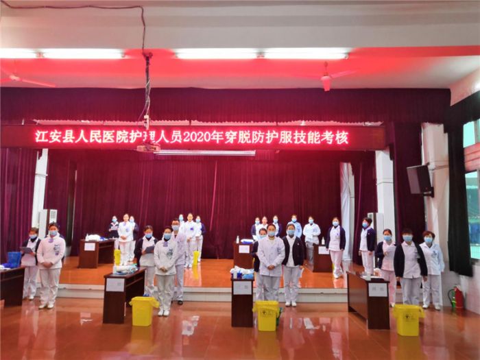 为积极有效的应对新型冠状病毒肺炎疫情蔓延,规范有效地开展预防和救治工作,强化科室应急处置能力,护理部于12月18日在医技楼5楼会议室举行全院护理人员穿脱防护服考核。