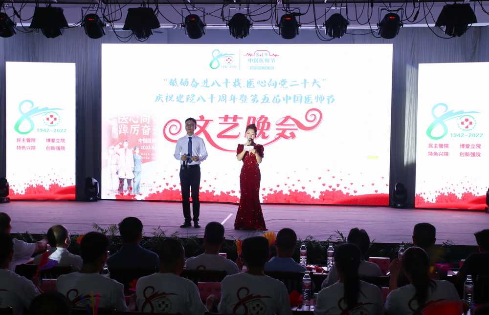 8月18日晚,江安县人民医院“砥砺奋进八十载 医心向党二十大”庆祝建院80周年暨第五届中国医师节文艺晚会在院隆重举行,县卫健局党委书记、局长李林出席晚会并讲话,县卫健局相关领导、县中医医院领导嘉宾、集团医院班子成员、在江历任院领导及全院职工代表齐聚一堂、共襄盛会,热烈庆祝第五届中国医师节,为医院八十岁生日献上诚挚祝福。晚会采取线下集会和线上直播的方式向会场内外同步全程播出。 李林局长代表县卫健系统讲话,首先他向县人民医院建院80周年致以热烈的祝贺,向广大医师朋友致以节日的问候和衷心的感谢!希望医院以建院80周