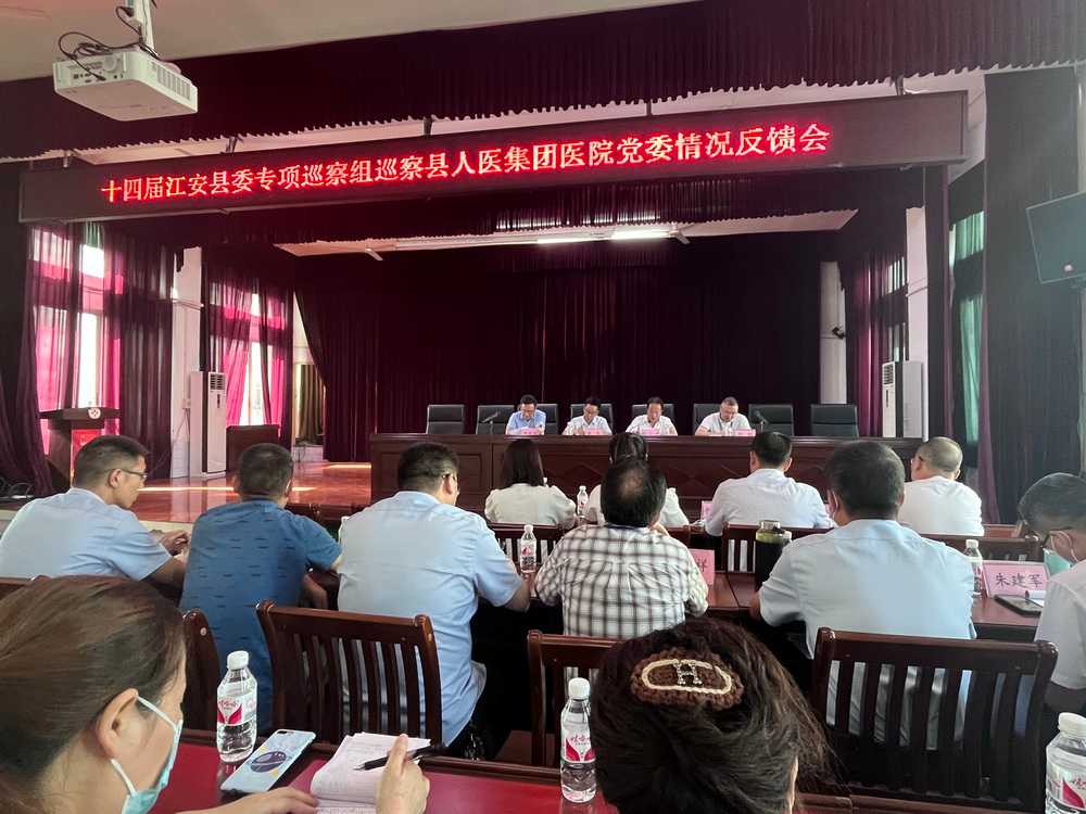 7月28日下午,十四届江安县委专项巡察组巡察县人医集团医院党委情况反馈会在县人民医院医技楼五楼会议室召开。县委巡察工作领导小组成员、县纪委副书记、县监委副主任张礼,县委专项巡察组组长杜小平,县人大派驻纪检组组长陈道强出席会议,集团医院党委书记主持会议。会上,杜小平组长按照县委巡察工作领导小组领导审定的反馈意见稿向医院进行了反馈,指出在聚焦党的理论路线方针政策和党中央决策部署在基层贯彻落实情况、群众身边腐败问题和不正之风 、基层党组织领导班子和干部队伍建设等3个方面的 13类问题,要求医院高度重视巡察反馈问题,落实全