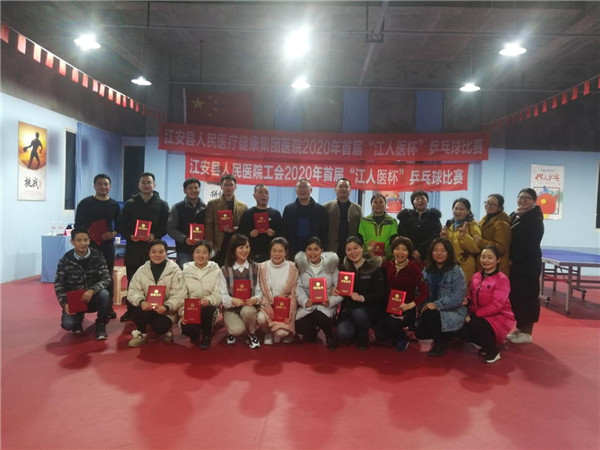 1月22日晚,由江安县人民医疗健康集团医院党委主办、工会承办的首届“江人医杯”乒乓球比赛决赛在馨海乒乓球俱乐部举行。