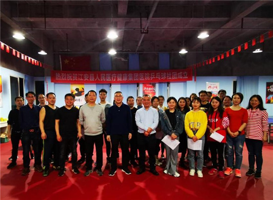为丰富职工业余文体生活,增进集团各单位交流,提升团队向心力、凝聚力,3月16日晚,江安县人民医疗健康集团医院乒乓球社团在馨海乒乓球俱乐部举行隆重的开团启动仪式,集团医院党委书记邹刚、集团工会主席肖洪出席活动,社团共30余名成员参加。
